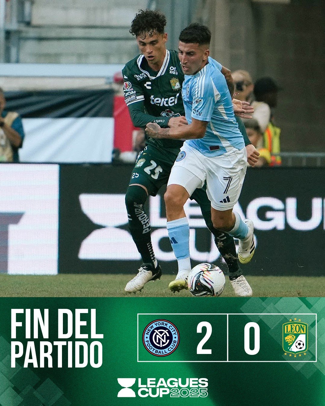 León, Gto.- León sufrió una dolorosa derrota por 2-0 ante el New York City FC y prácticamente selló su eliminación de la Leagues Cup 2025. El equipo dirigido por Eduardo Berizzo mostró una preocupante falta de concentración defensiva y una alarmante inoperancia ofensiva, factores que se combinaron para entregar uno de sus peores partidos en el torneo binacional.