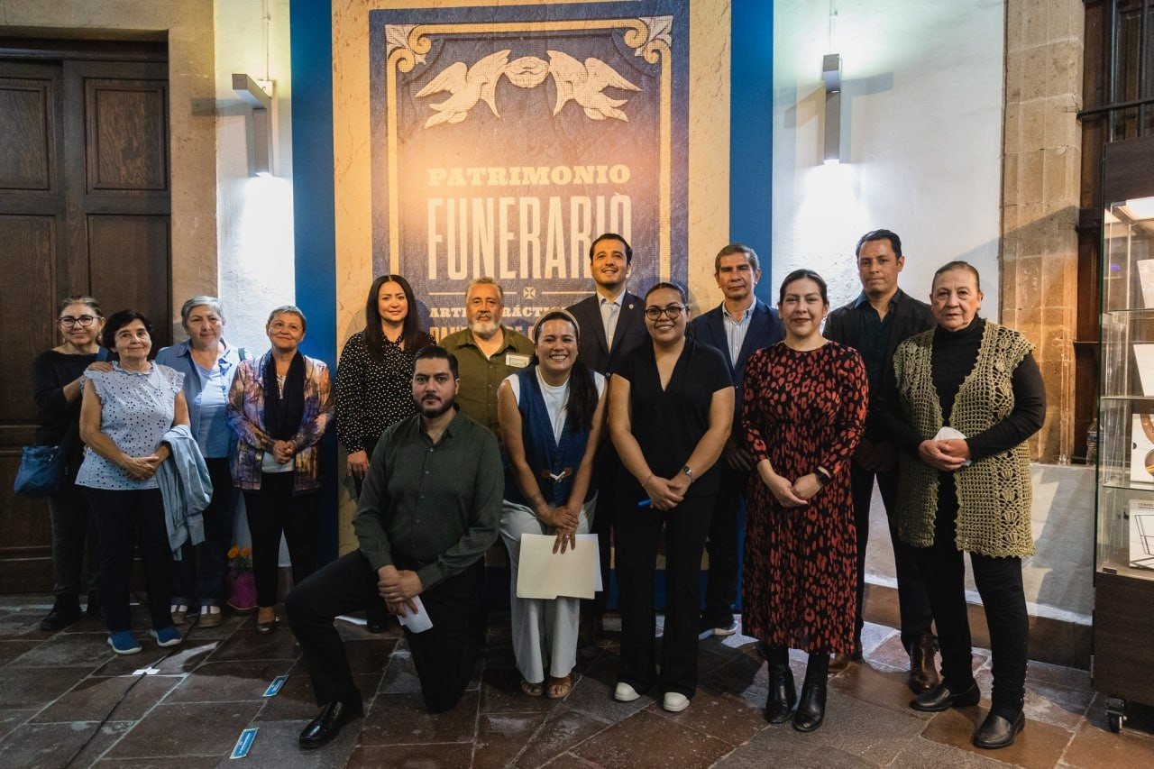 Según se precisa en la exposición, el Panteón de San Nicolás fue construido en 1892 por iniciativa de Francisco Urteaga y, debido a su valiosa representación del arte funerario del siglo XX, fue reconocido como monumento histórico por el Instituto Nacional de Antropología e Historia (INAH).