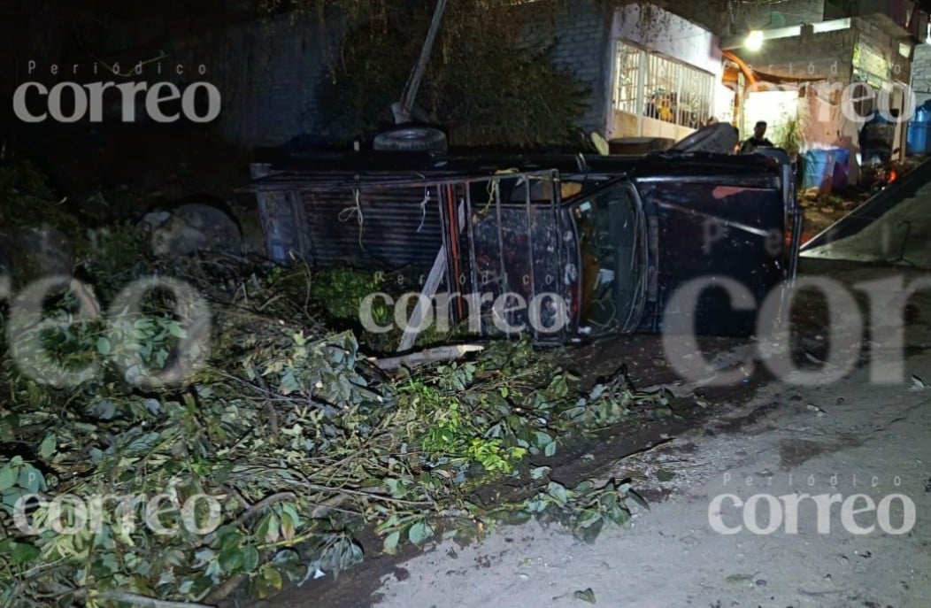León, Gto.- Una camioneta se incendió luego de volcar cuando su conductor intentaba descargar hierba y basura en un terreno baldío de la colonia Lomas de Medina. Esto, en la ciudad de León.