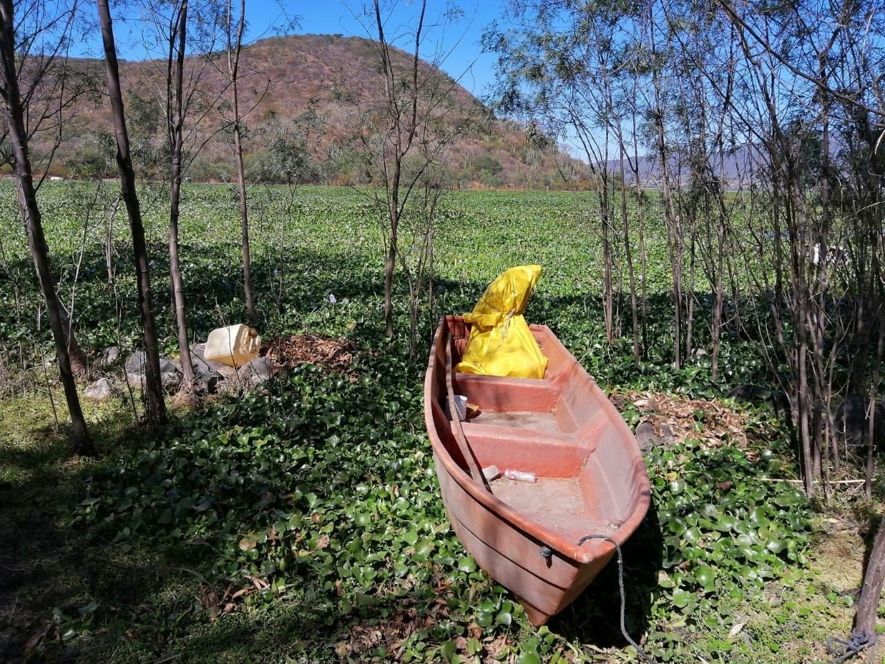Acámbaro, Gto.- Pescadores de siete comunidades que viven a la periferia del lago de Cuitzeo en Acámbaro se han visto afectados por la proliferación del lirio acuático el cual no les permite ingresar a pescar y poder llevar el sustento a sus familias.