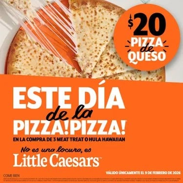 Little Caesars se unió, como ya es costumbre, a esta celebración con una promoción en sus pizzas de queso que podrán ser adquiridas a solo 20 pesos en la compra de una 3 Meat Treat de pepperoni, salchicha italiana y tocino o una Hula Hawaiian de jamón y piña.