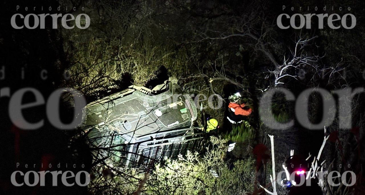 Automovilista vuelca y cae a barranco en camino al Cubo, Guanajuato capital