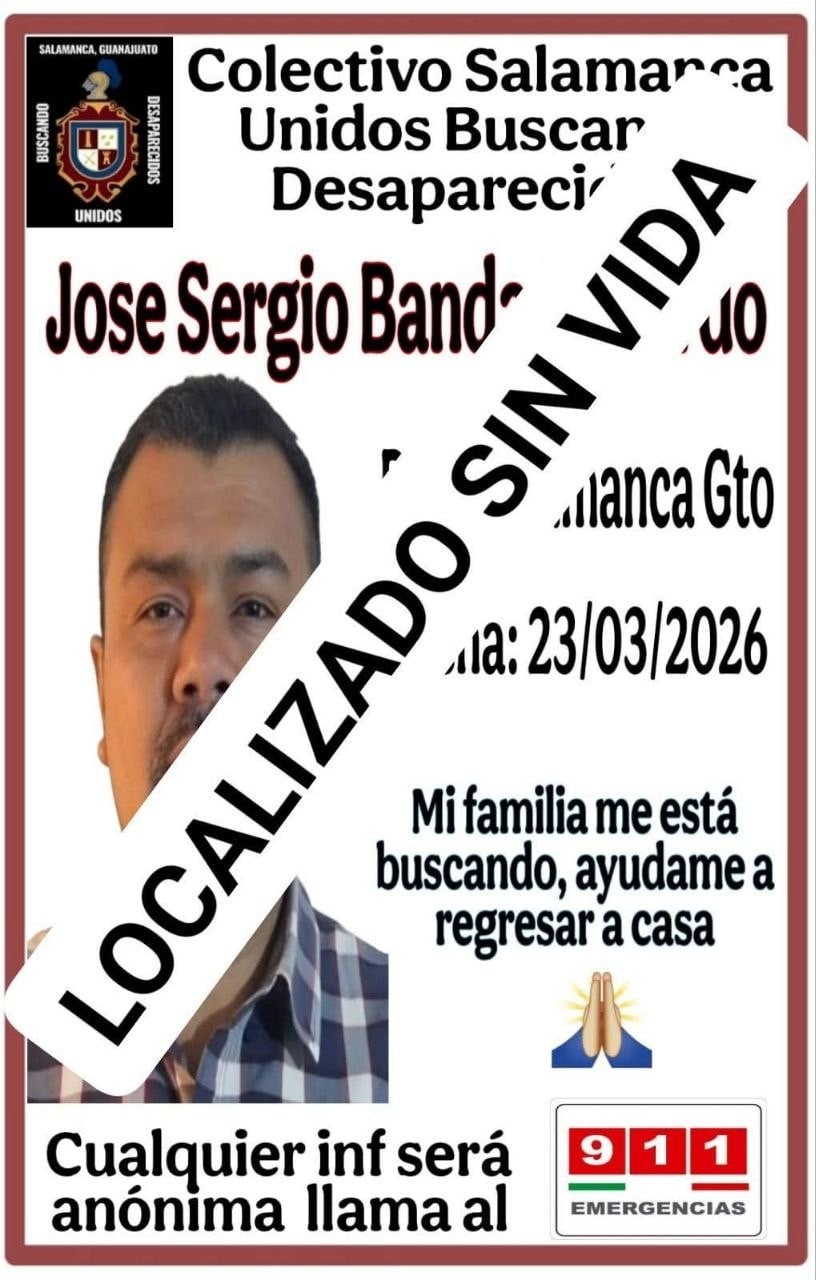 Salamanca, Gto.- El Colectivo Salamanca Unidos Buscando Desaparecidos informó la desactivación de dos fichas de búsqueda, la primera de ellas de José Sergio Banda y la segunda, del menor de edad Luis Ángel Torres.
