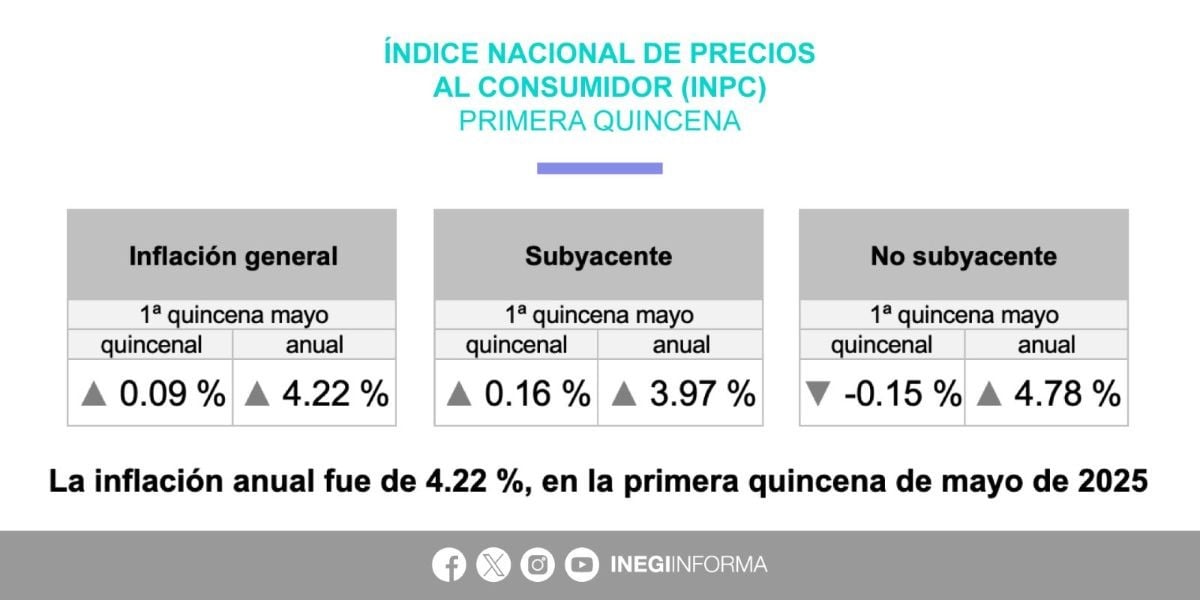 El reporte del INEGI reveló una tendencia al alza del 0.9% de la inflación quincenal en comparación con las cifras de la última quincena de abril, con ello la inflación general anual se ubica en 4.22%.