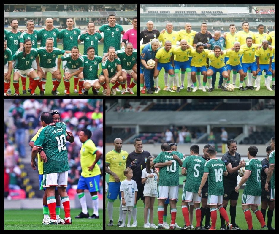 Con figuras históricas como Rafa Márquez, Pável Pardo y Cuauhtémoc Blanco por parte del Tri, y leyendas como Ronaldinho, Ricardo Kaká y Adriano por Brasil, el encuentro fue un homenaje al futbol de finales del siglo XX y principios del XXI.