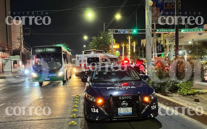 León, Gto.- La irresponsabilidad de un motociclista al intentar invadir el carril confinado de la oruga terminó en un aparatoso accidente vial.