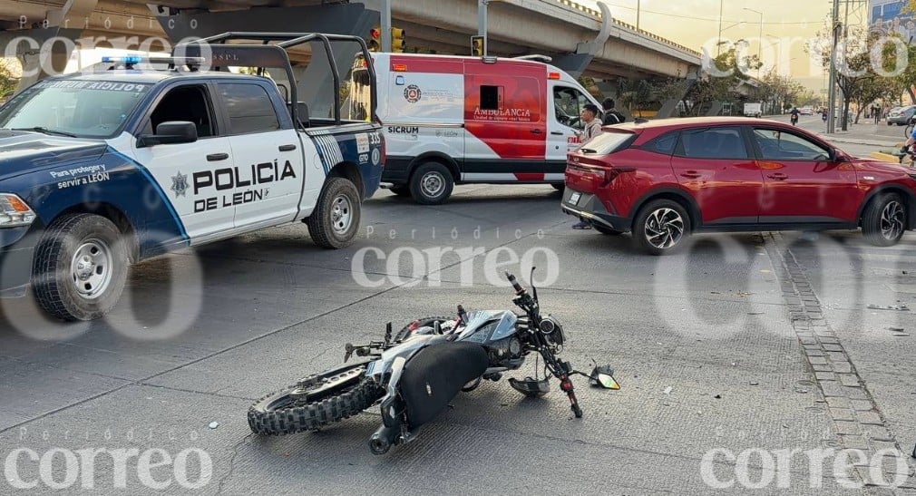 León, Gto.- La tarde de este viernes la falta de pericia de dos jóvenes que iban a bordo de una motocicleta provocó un accidente vial y que terminaran con lesiones de consideración.
