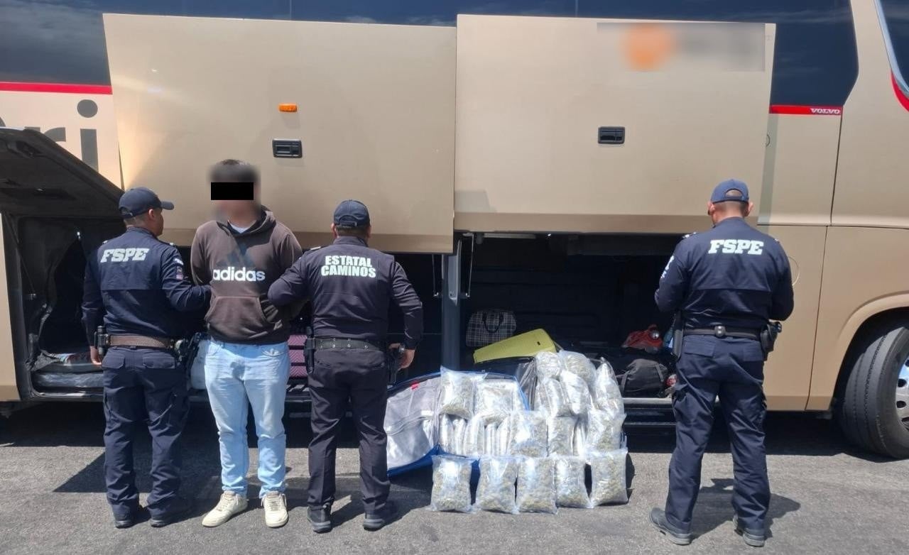 Aseguran más de 23 mil dosis de marihuana en autobús sobre carretera Morelia-Valtierrilla; hay un detenido
