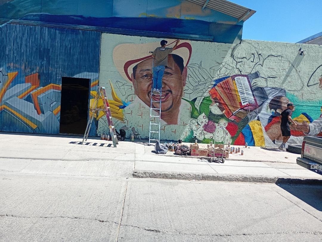 León, Gto.- En la colonia Presidentes, del municipio de León, avanza la creación de un nuevo mural urbano que rendirá homenaje a figuras representativas de la cumbia, como Celso Piña y Andrés Landero, en un proyecto impulsado por artistas independientes de la ciudad.
