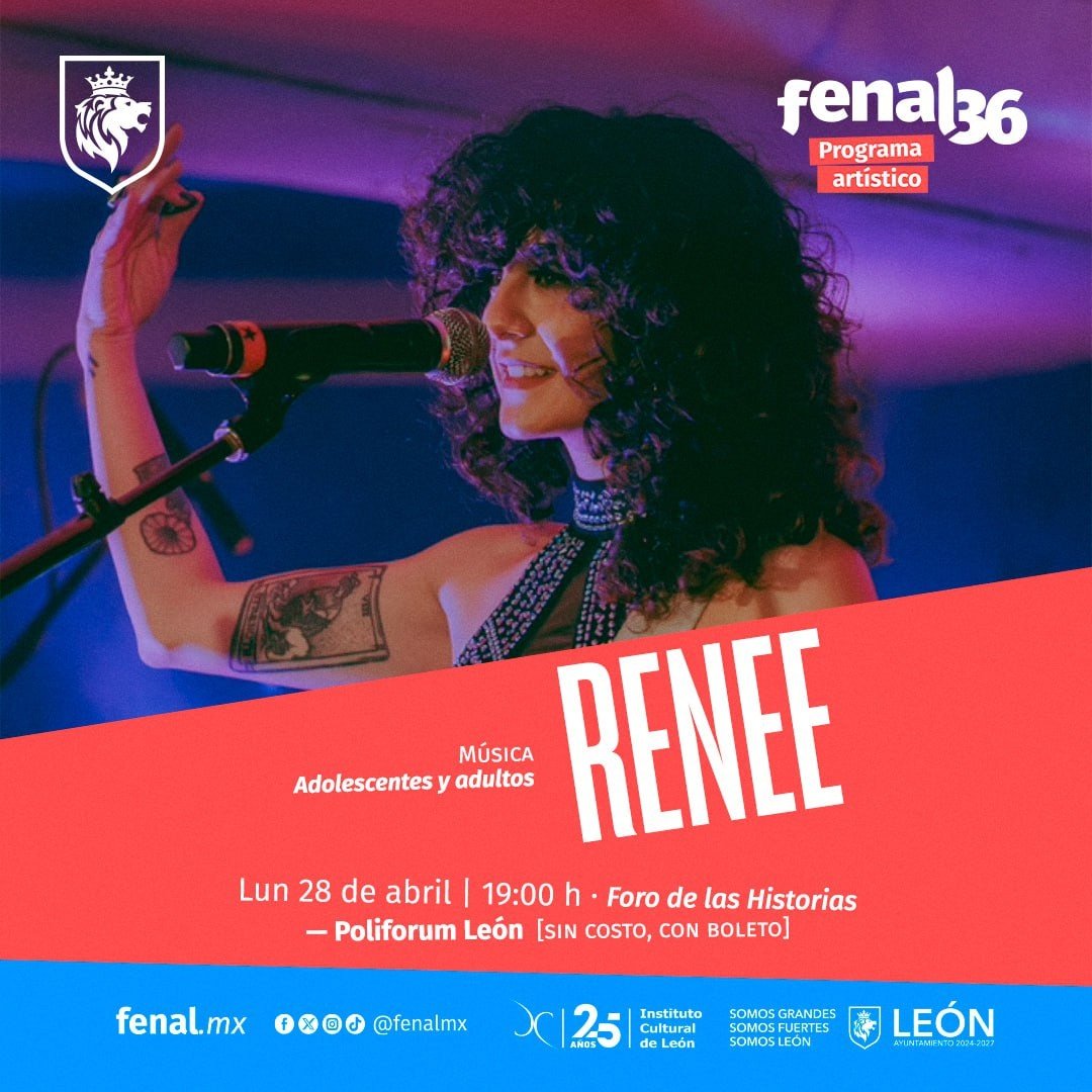 Como parte del programa artístico nacional de la Feria Nacional del Libro de León (Fenal 36), dos artistas con propuestas frescas y potentes llegarán al escenario del Foro de las Historias: la cantautora RENEE, conocida por temas como Nunca tristes, y la pionera de la anarcumbia Amandititita, autora de éxitos como Metrosexual y La muy muy.
