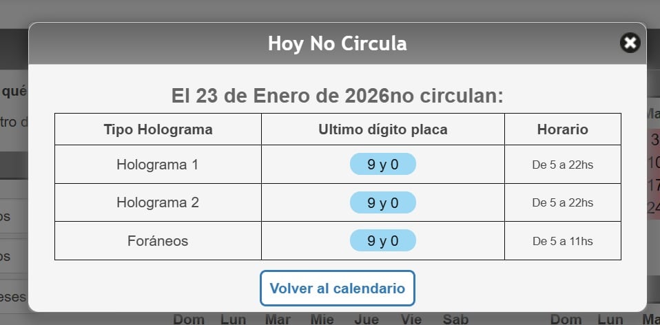 ¿Qué vehículos no circulan este viernes 23 de enero?