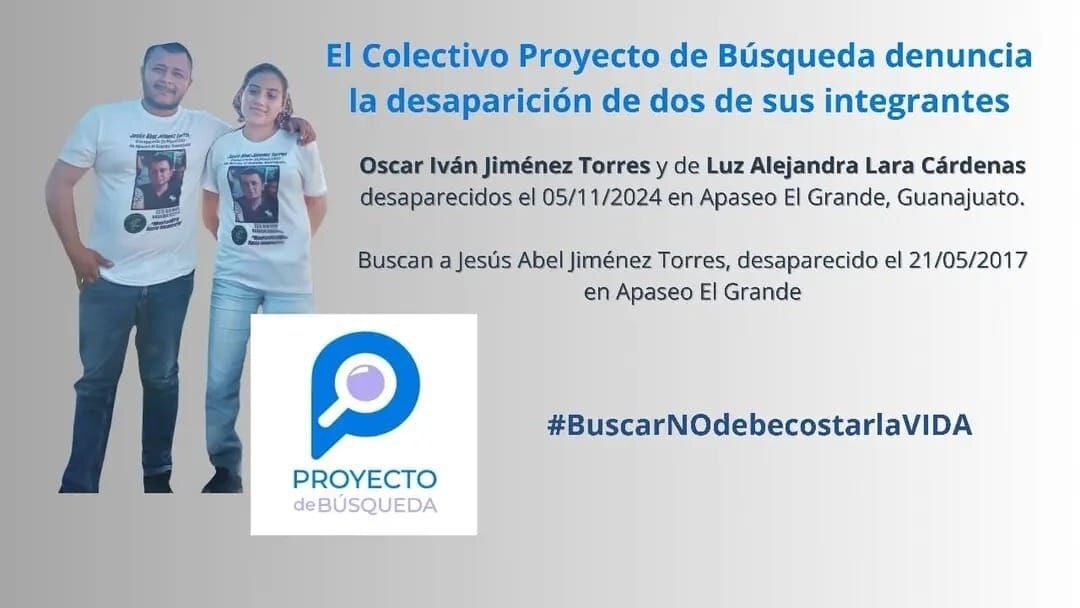 Se trata de Abel Jiménez Torres, el 21/05/2017 y de dos personas buscadoras, integrantes de @GtoProyecto, desaparecidos el 05/11/2024: