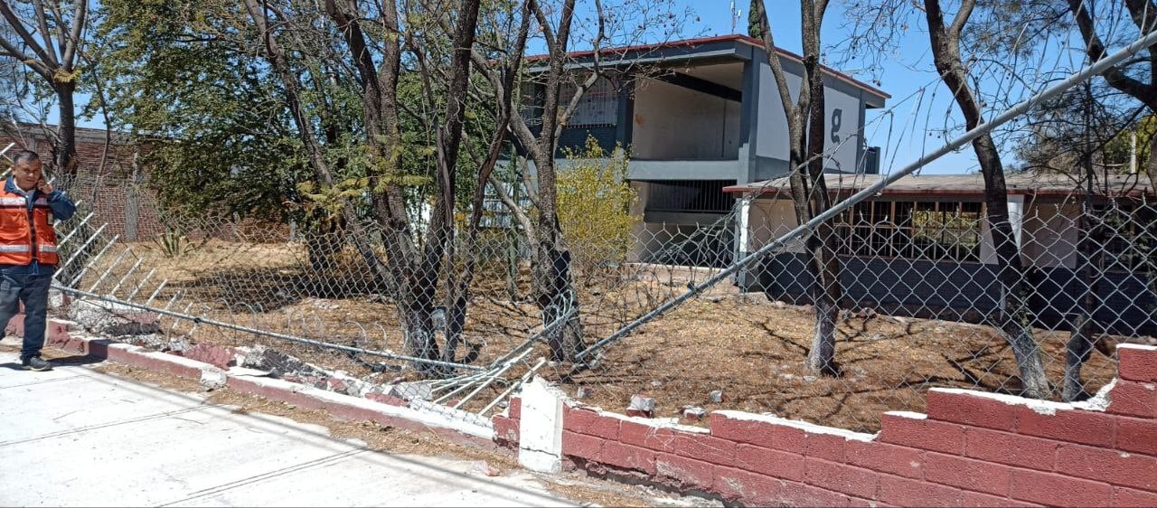 Silao, Gto.– Padres de estudiantes de la Telesecundaria Técnica número 11 del municipio de Silao reprocharon que no ha sido reparada la barda que fue derrumbada por un automóvil durante un choque.
