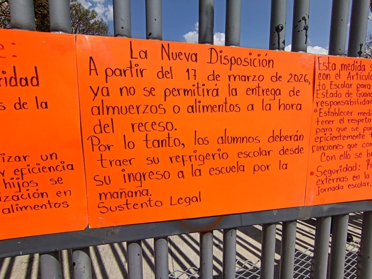 Señalaron que anteriormente era común llevar el almuerzo y entregarlo a través de las rejas del plantel, o que los estudiantes hicieran compras a vendedores ubicados en las inmediaciones. Sin embargo, esta práctica ya no está permitida, lo que ha provocado tensiones en el centro educativo, ya que los costos dentro de la escuela resultarían más elevados.