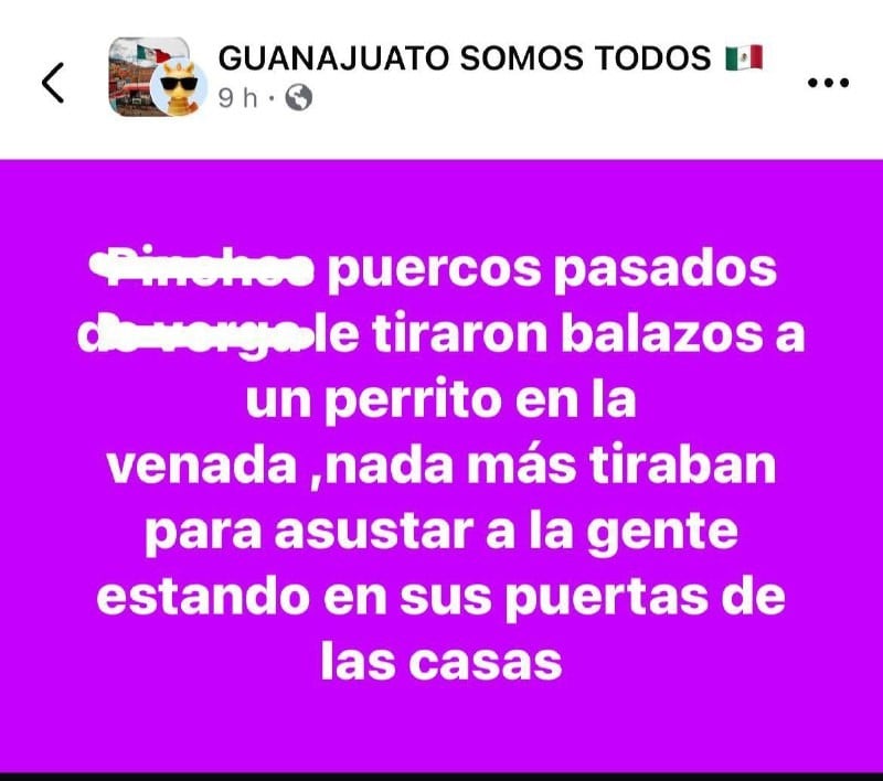 Guanajuato, Gto.- La asociación Tlacuatzin Rescue denunció otro caso de brutalidad animal donde un perro resultó lesionado por un impacto de bala perdida tras un grave incidente de seguridad en el barrio de La Venada.