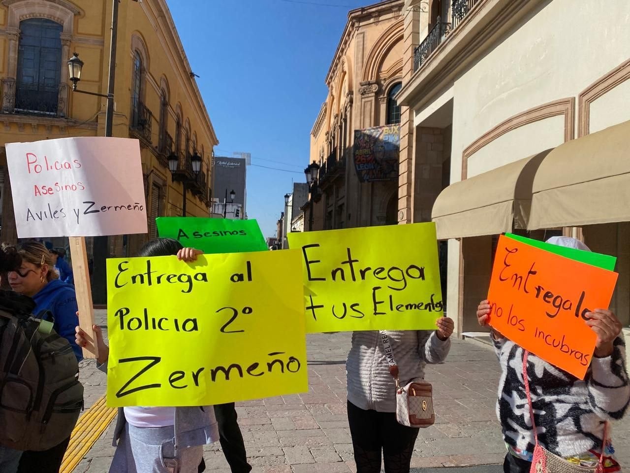 Con una grande lona donde se leía “Entreguen a los asesinos de dos niños inocentes” y cartulinas que anunciaban “Policías asesinos Avilés y Zermeño”, “Jorge Guillén Rico, esta vez no los solapes”, entre otros mensajes acudieron a exigir justicia.