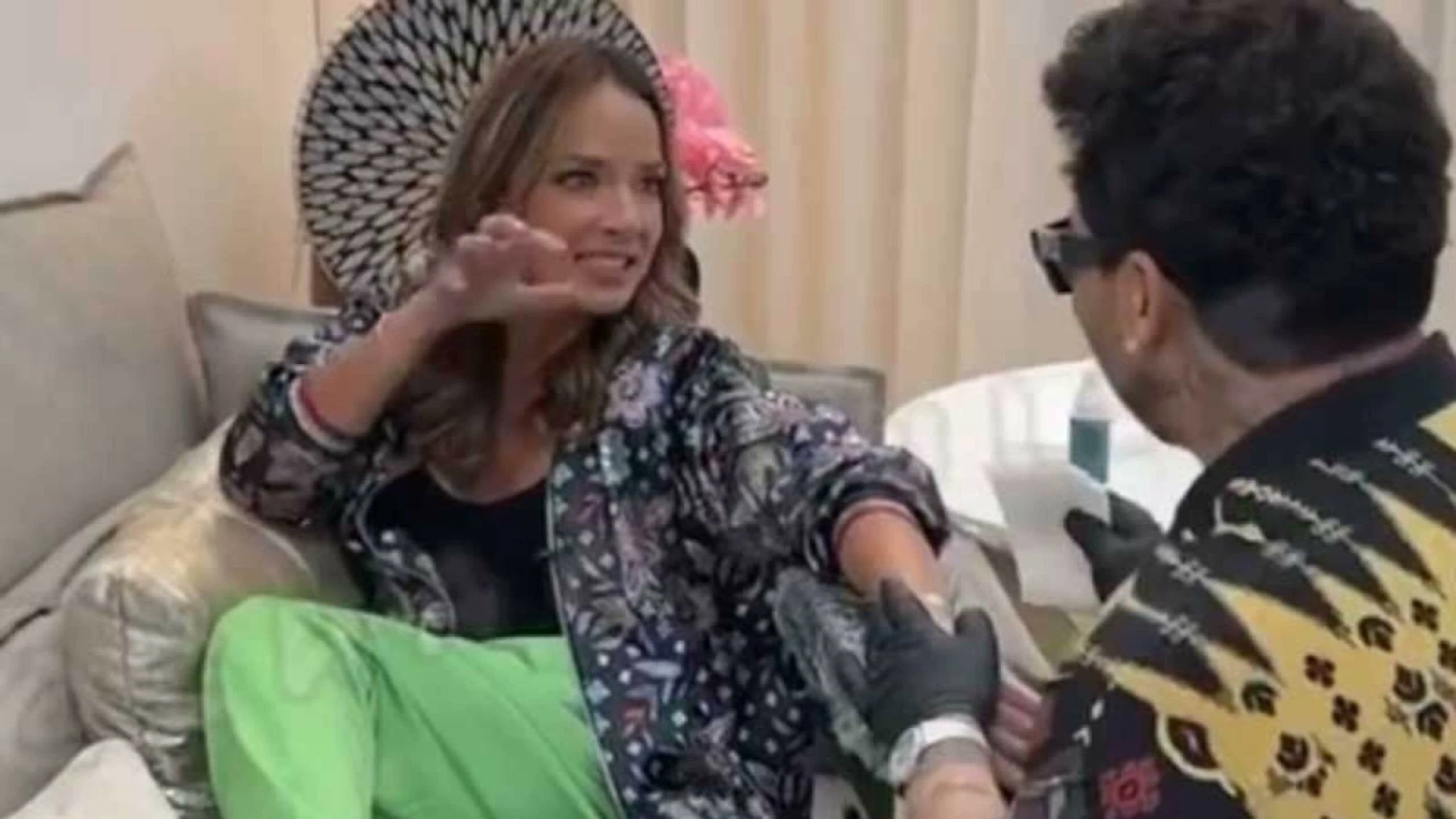 Y es que hubo un momento en donde la actriz le comentó al cantante que tenía la idea de hacerse un tatuaje, pero le gustaría que quien se lo hiciera fuera el intérprete de ‘Adiós amor’, quien accedió y le hizo un pequeño tatuaje con la inicial del nombre de la famosa.