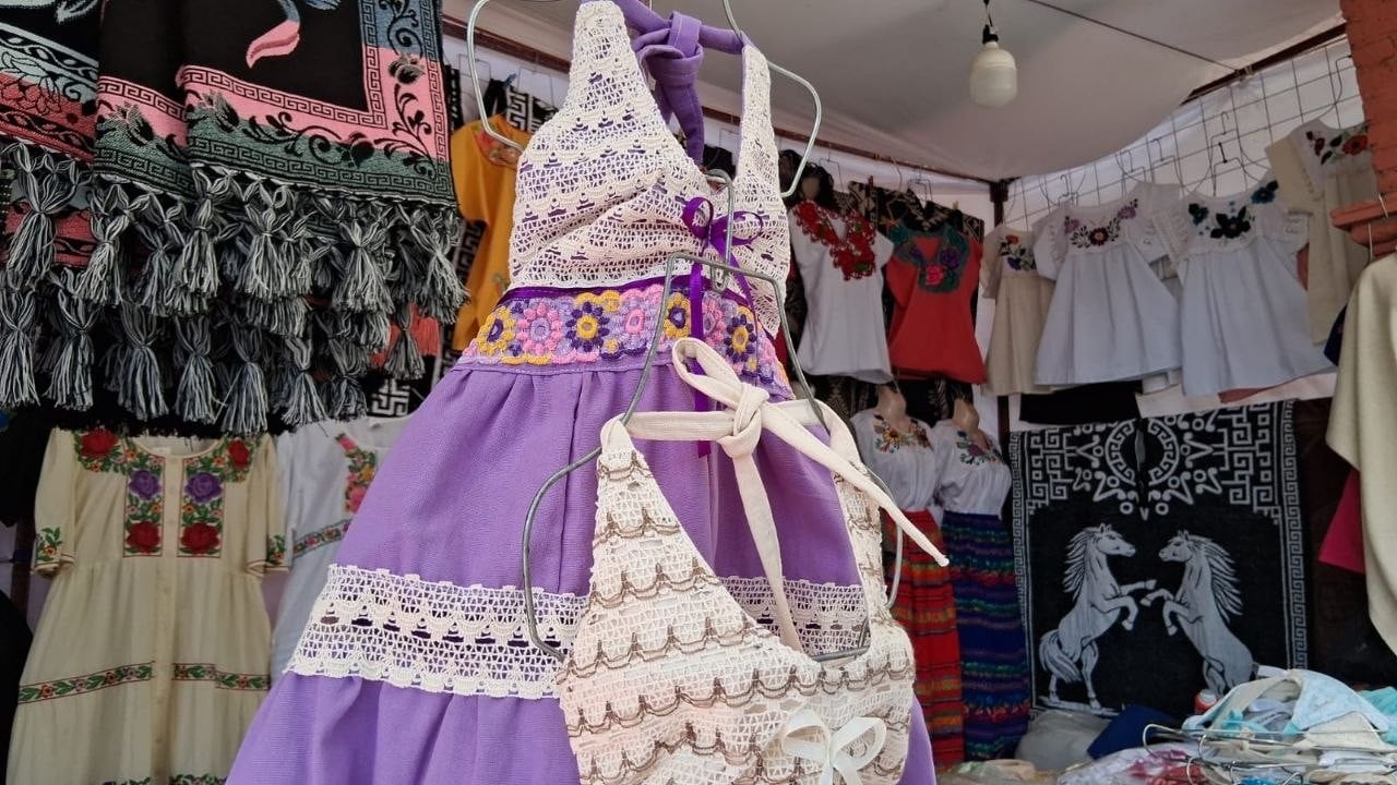 Rosalba, contó que viene de Cherán, el cual se encuentra en la meseta Purépecha de Michoacán, en donde ahí se confecciona cada prenda, un trabajo artesanal que puede llevar desde días, semanas e incluso meses. Instalada en el jardín Xidoo o jardín de los enamorados, espera que este año sea de buena venta.