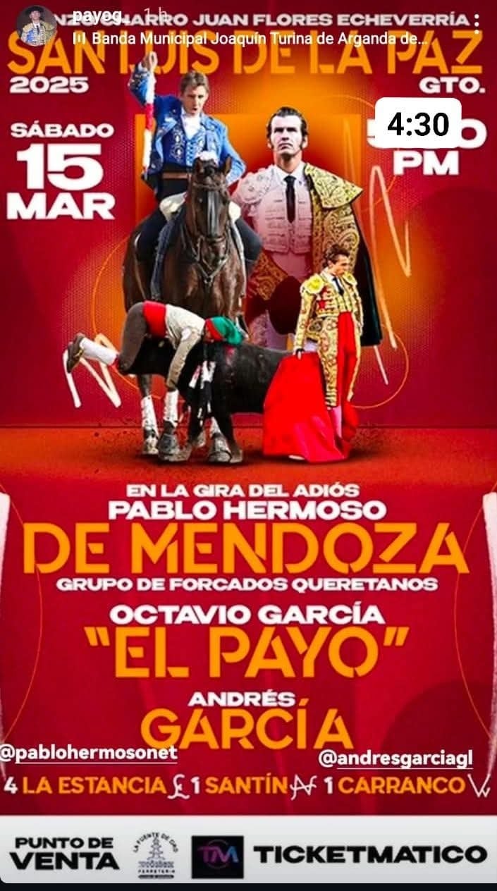 San Luis de la Paz, Gto.- Este fin de semana se llevaría a cabo en el municipio de San Luis de la Paz una corrida de toros anunciada para este sábado 15 de marzo. El evento se pospuso después del secuestro y asesinato de Irán Belmont.