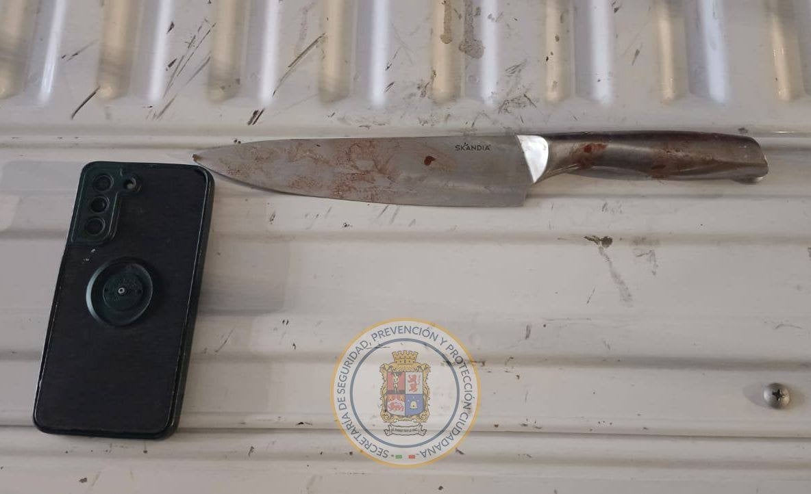 Los oficiales intervinieron de inmediato y lograron detener a los presuntos responsables, identificados como Joshua “N” y Diana “N”. En el lugar se les aseguró un teléfono celular y un cuchillo de aproximadamente 30 centímetros, presuntamente utilizado en la agresión.