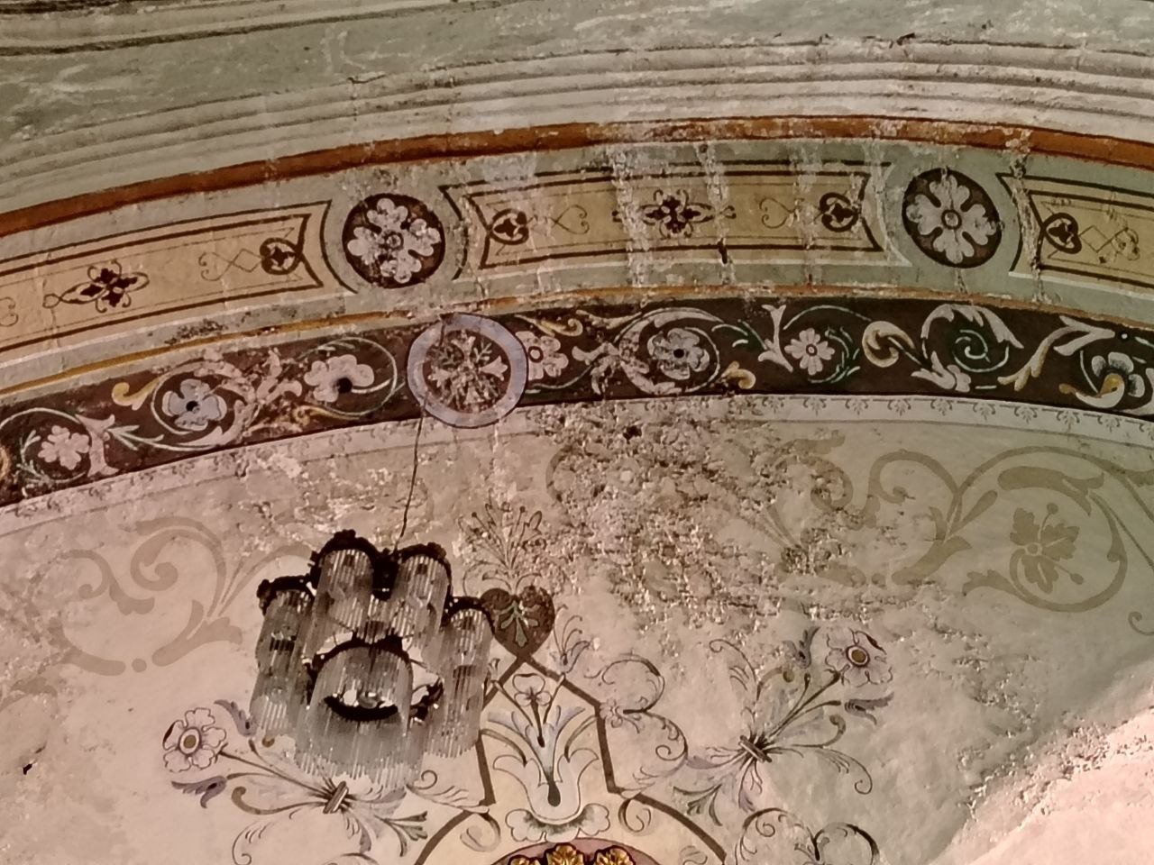 Al interior del inmueble, en diversas partes del techo y las paredes se pueden observar los graves estragos que ha producido la humedad a lo largo de los años, destruyendo en algunos puntos casi por completo las hermosas pinturas que adornaban las paredes y los techos.