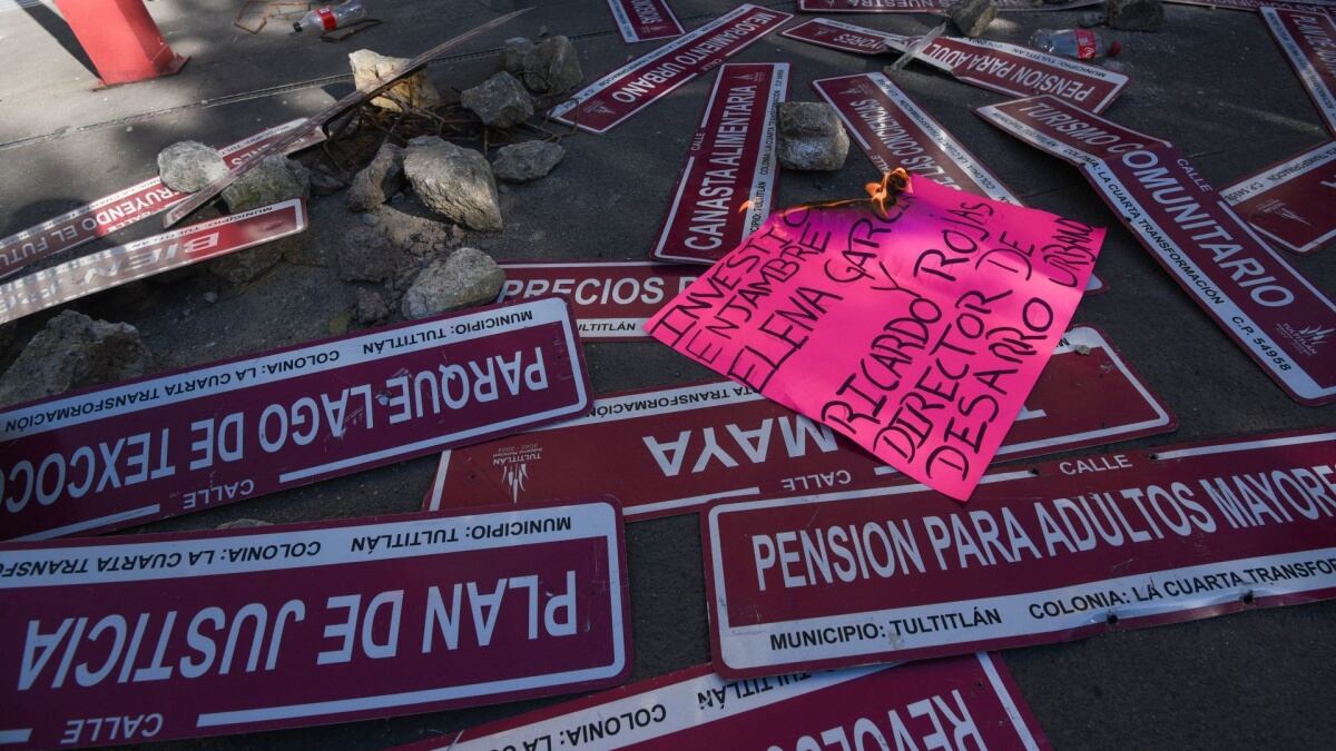 En enero de 2025, en un acto de protesta, las y los vecinos retiraron los nuevos letreros de la colonia ‘Cuarta Transformación’. Las manifestaciones se llevaron a cabo varias veces ese año.