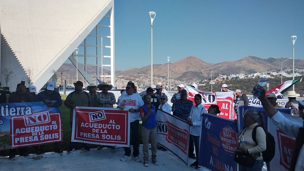 Guanajuato, Gto.- Unas 100 personas se manifestaron afuera del Congreso de Guanajuato en repudio al proyecto del Acueducto Solís-León.