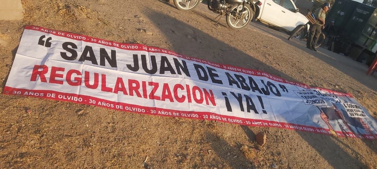 En las grandes lonas que mandaron hacer se leían mensajes como: “San Juan de Abajo, regularización ¡ya!”, “El gobierno debe cumplir su palabra, regularización de San Juan de Abajo” y “30 años en el olvido”.