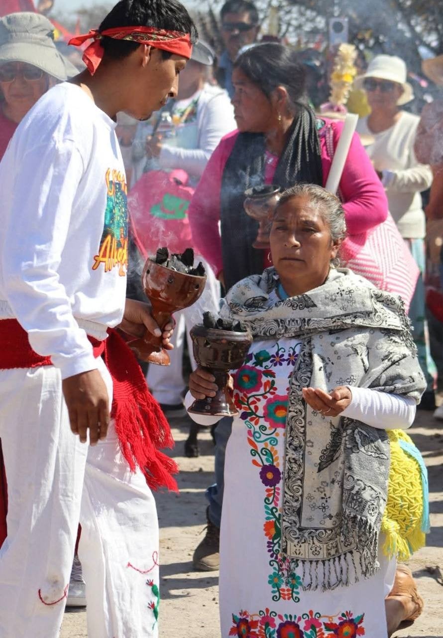 Autoridades de los pueblos indígenas de San Miguel de Allende, Dolores Hidalgo, Comonfort y Querétaro participaron en la ceremonia, encabezada la mayordomia de Cañada de la Virgen y la Hermandad HñaHñu- Chichimeca, para realizar la bendicion de la semilla y pedir por el buen temporal.