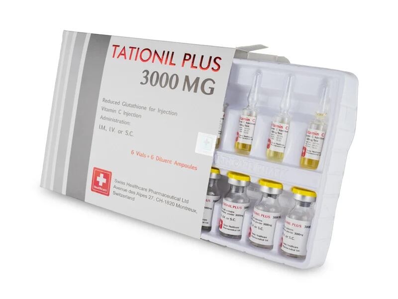 De acuerdo con información de la farmacéutica Swiss Healthcare Latinoamérica, el Tationil Plus de 3000 mg es un medicamento inyectable, cuyo componente principal es el glutatión, sustancia que produce el cuerpo y funciona como antioxidante.