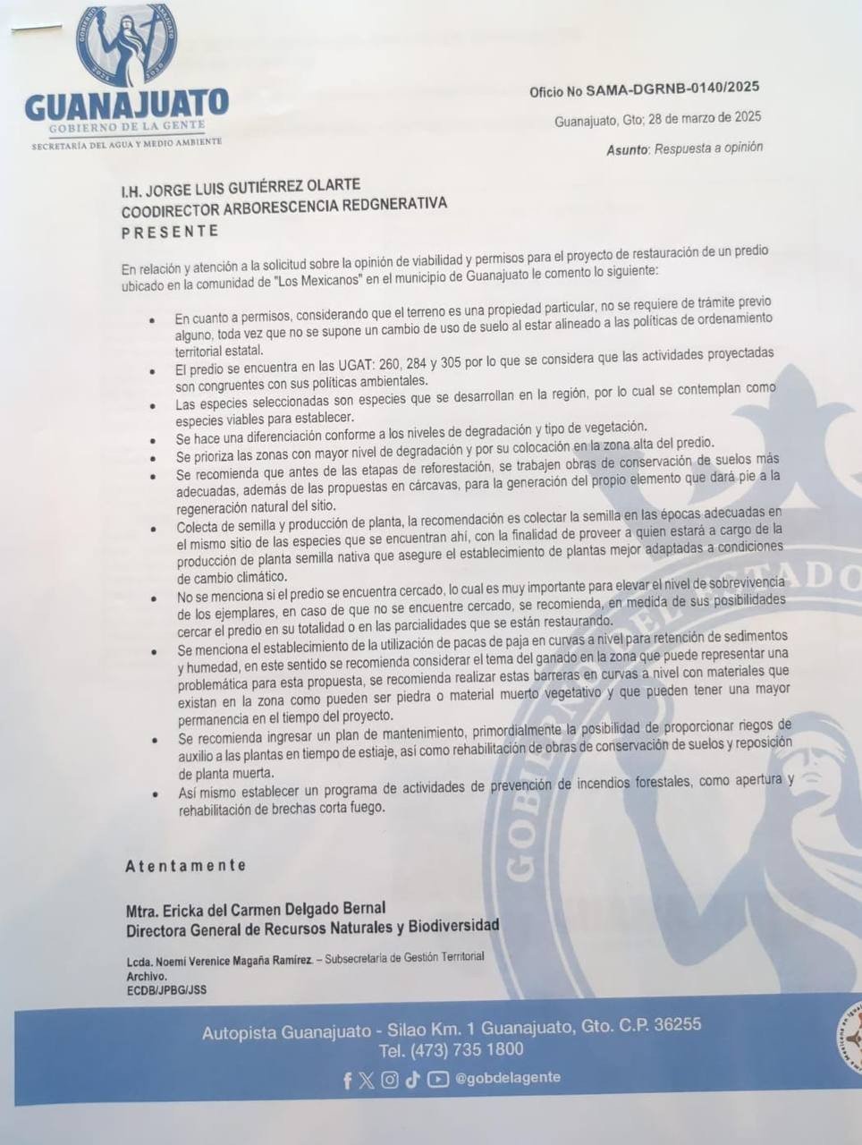Esta autorización fue firmada y formalizada mediante un oficio con la clave oficial SAMA-DGRNB-0140/2025 y, que fue emitida, el pasado 28 de marzo del 2025 y fue respaldada por un consultor ambiental, Jorge Luis Gutiérrez Olarte, y el coordinador de la empresa, Arborescencia RedGenerativa, especializada en estudios ambientales.