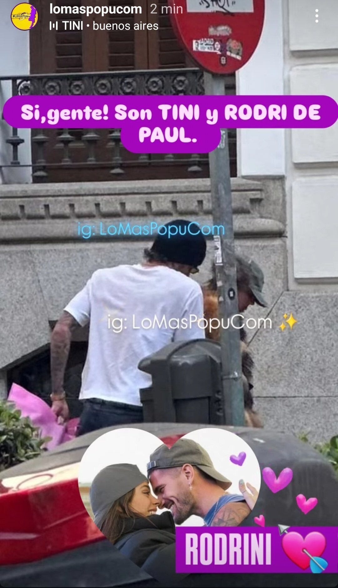 En la fotografía se ve a Tini y a Rodrigo a escondidas en España, lo que deja en el aire la duda su la cantante argentina regresó con el futbolista.