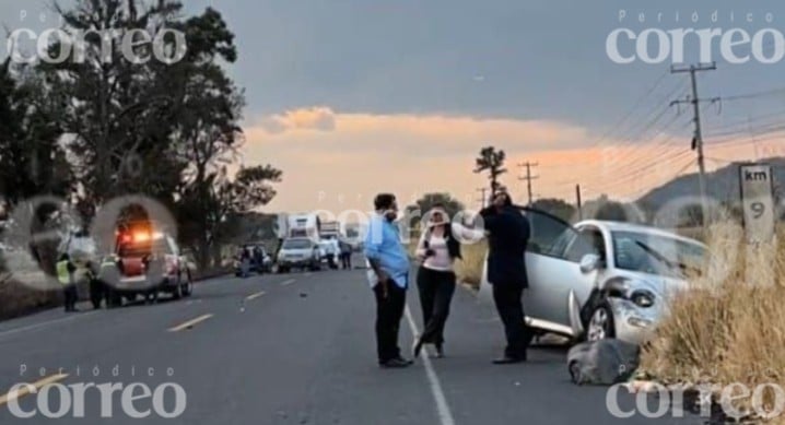 Salvatiarra, Gto.- Una intensa quema de pastizal provocó una densa nube de humo que redujo drásticamente la visibilidad de los conductores durante la tarde del lunes, desencadenando un aparatoso accidente tipo carambola sobre la carretera Salvatierra–Yuriria, a la altura del entronque a San Nicolás.