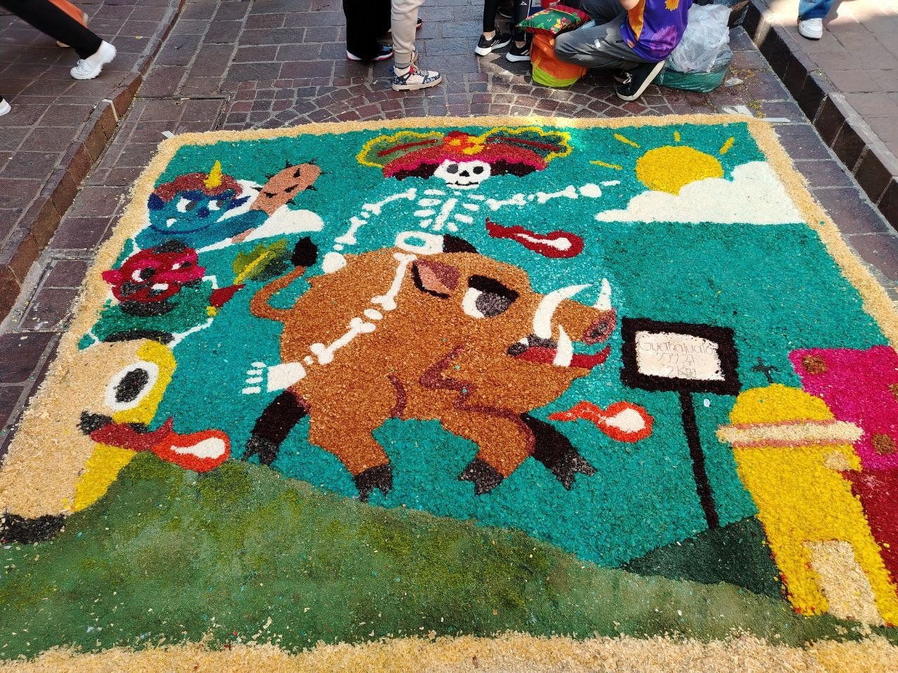 El evento, organizado por Manos Unidas de Guanajuato A.C., reunió a más de un centenar de equipos participantes, entre colectivos artísticos, instituciones educativas y visitantes provenientes de otros estados del país. Cada tapete contó una historia: desde representaciones del Mictlán y las catrinas tradicionales, hasta interpretaciones contemporáneas sobre la muerte y el recuerdo.