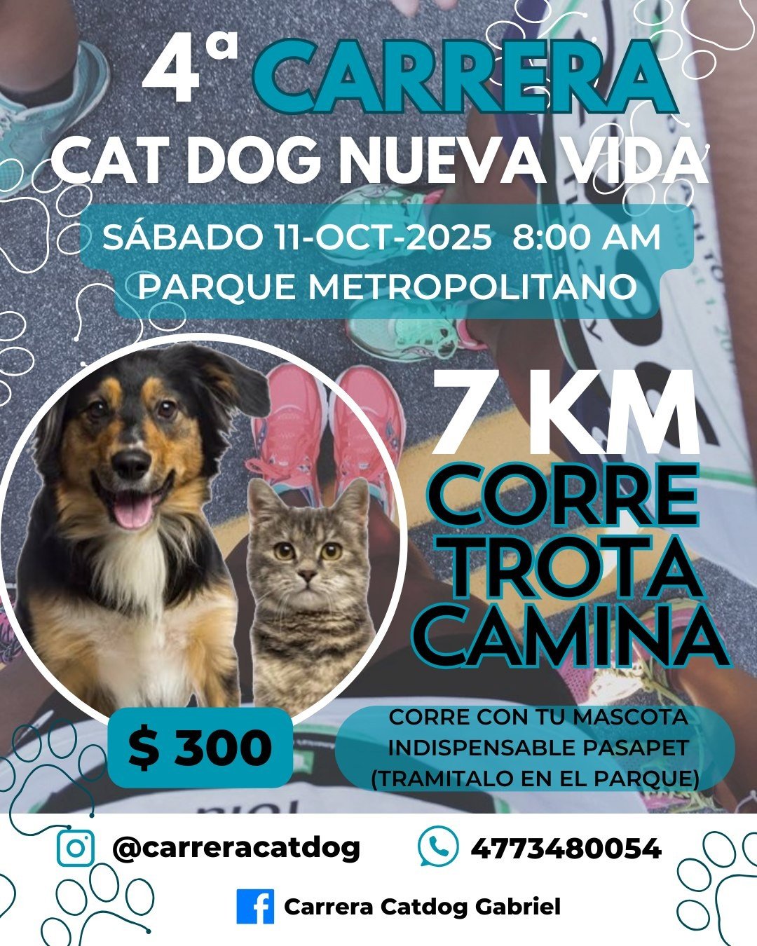 León, Gto.- Este fin de semana se celebrará la 4.ª edición de la Carrera “Cat Dog Nueva Vida”, un evento deportivo con causa, que busca beneficiar a organizaciones de rescate animal.
