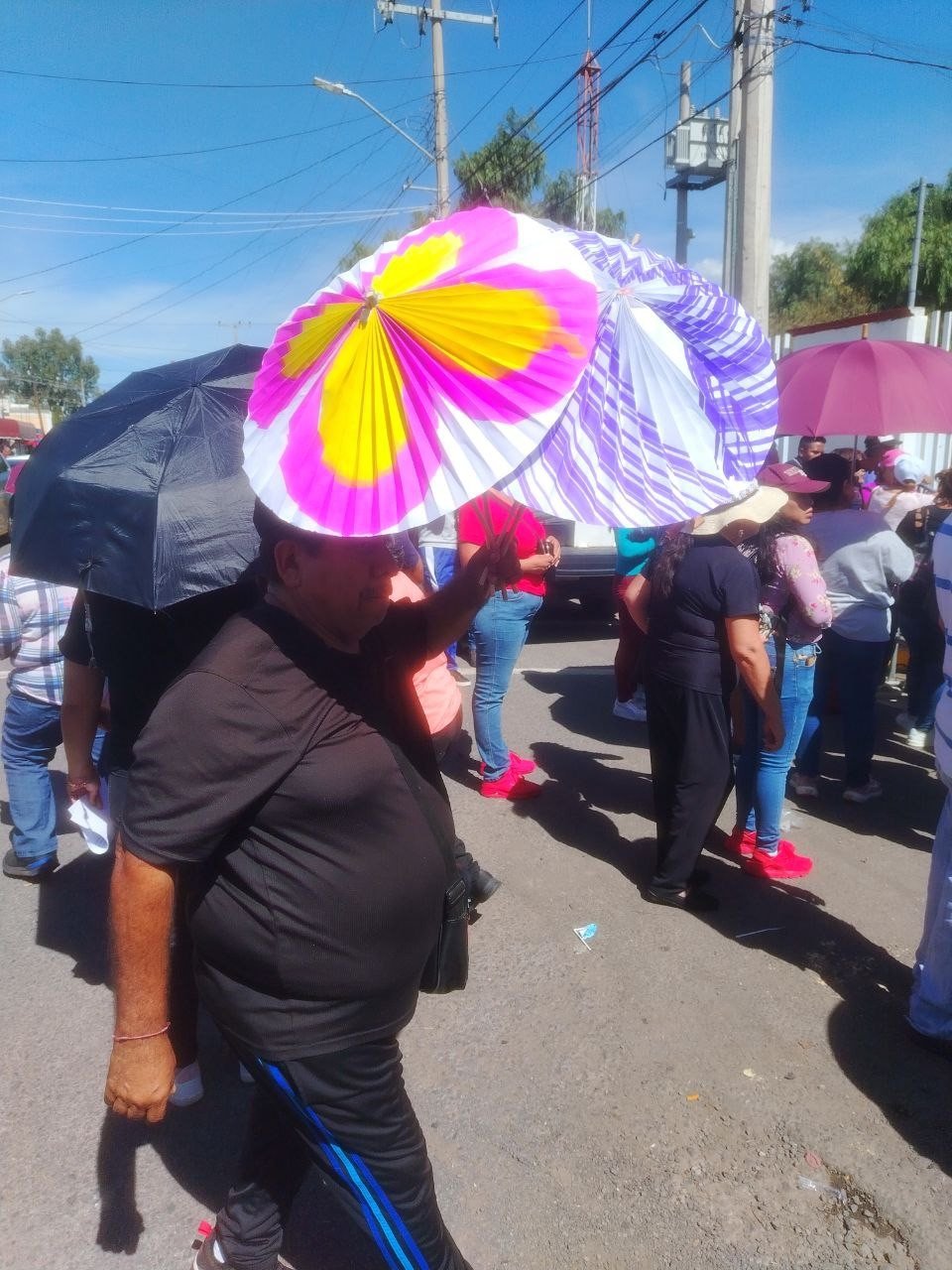 Las sombrillas al ser necesarias el sol les está pegando a los presentes pero los que no iban preparados pueden comprar una sombrilla de papel de a $50 pesos