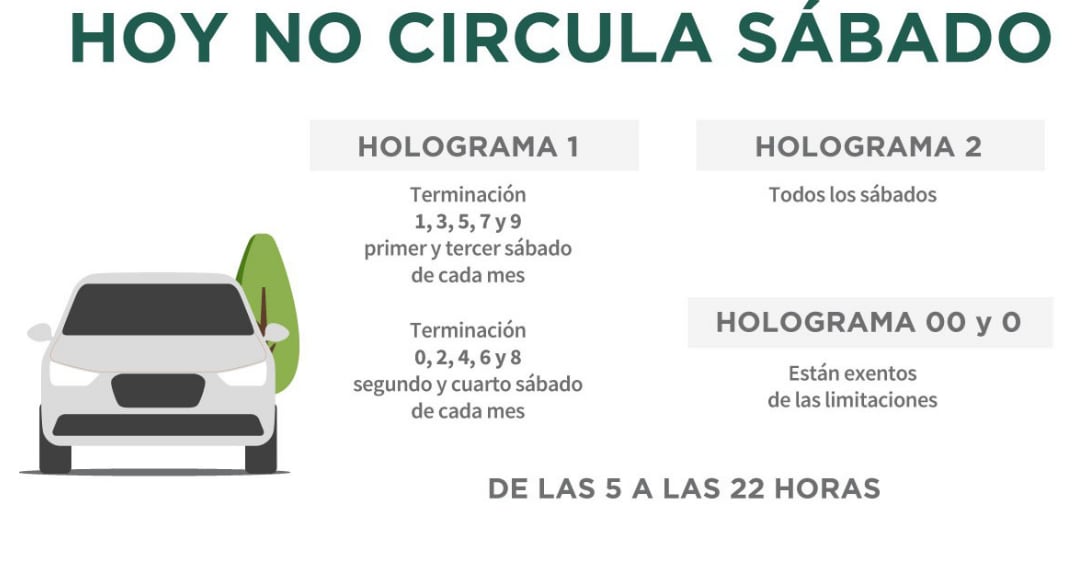Los automóviles con holograma 1 y terminación de placas 1, 3, 5, 7 o 9 deberán quedarse en casa durante el primer sábado de diciembre. Esta medida aplica también a los vehículos con holograma 2.