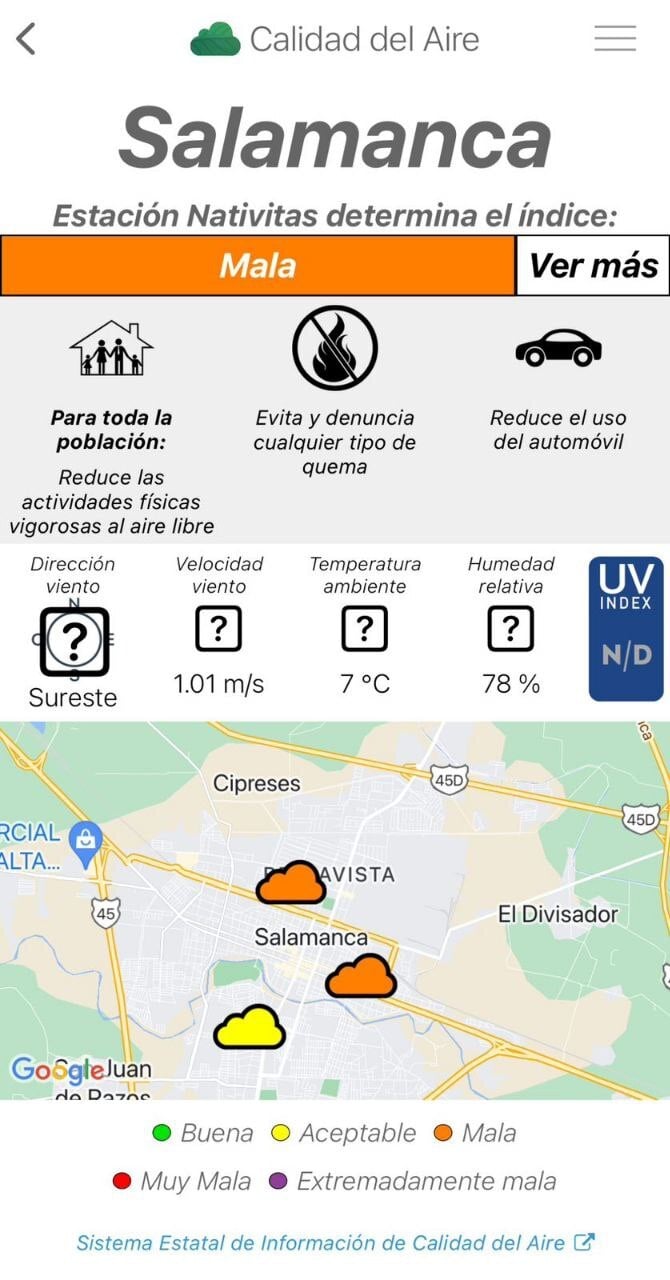 De acuerdo a la página del monitoreo ambiental de la Secretaría del Agua y Medio Ambiente del Estado se registraron altas concentraciones de contaminantes en la estación de monitoreo de Nativitas al oriente de la ciudad, por lo que tanto en esa zona como en el área de la estación de monitoreo Cruz Roja la calidad del aire se estableció como mala, por ello a las 8: 40 de la mañana se activó la Precontingencia Ambiental.