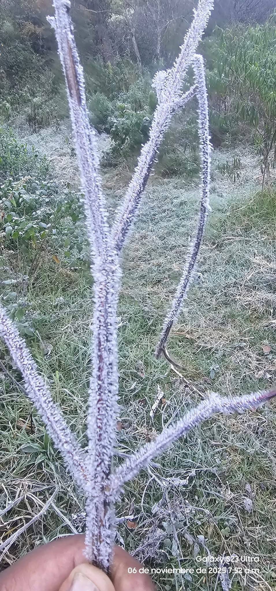 Aunque en el Monte de San Nicolás no hay actividad agrícola significativa, su cercanía con la Sierra de Santa Rosa resalta la intensidad del fenómeno, con temperaturas mínimas de 7 °C y máximas de 23 °C. Gracias a las fotografías tomadas por los comuneros, se pudo apreciar el pastizal y las ramas congeladas a las 7:51 a.m., bajo un cielo despejado y con un sol que, poco a poco, descongeló la vegetación.