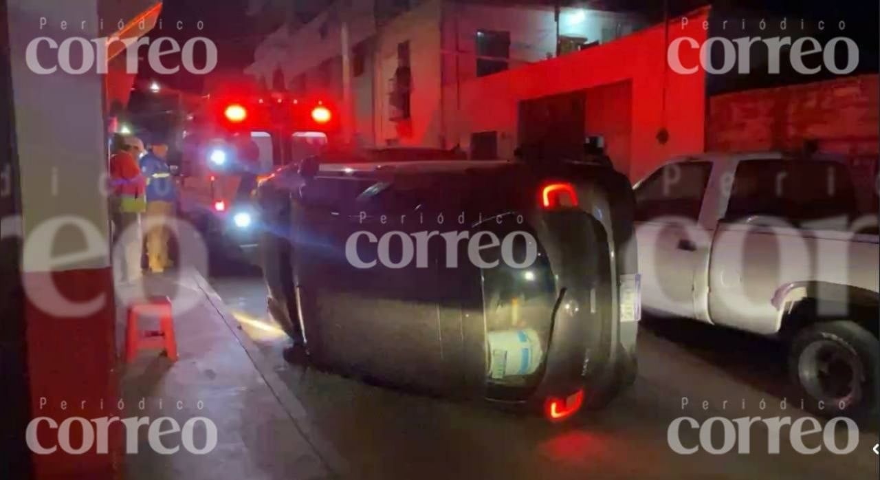 Automovilista vuelca en calle Quintana Roo, Dolores Hidalgo, y termina herido