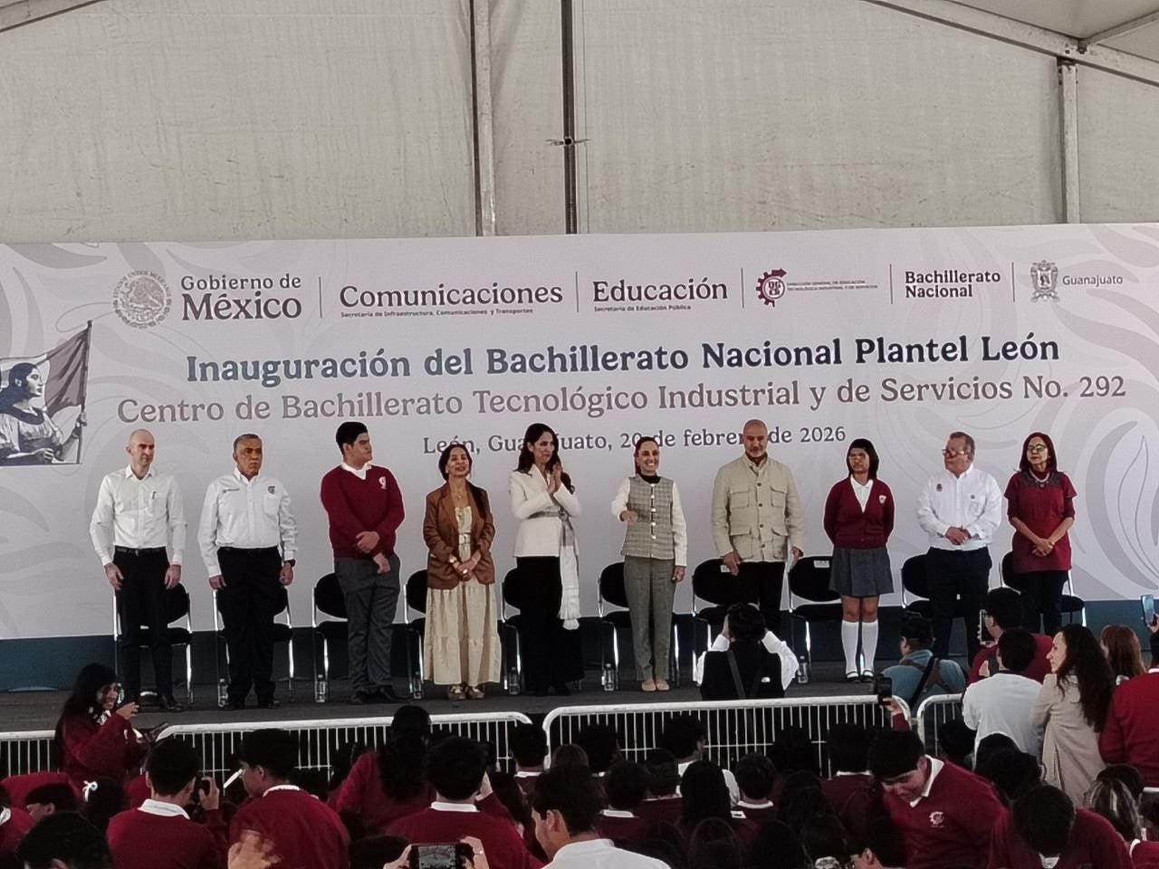León, Gto.- Entre porras y tambora estudiantil, la presidenta Claudia Sheinbaum Pardo inauguró las instalaciones del Bachillerato Tecnológico Industrial y de Servicios (CBTIS) 292, plantel León, en el que se impartirán materias orientadas a la Inteligencia Artificial, E-commerce y al armado de semiconductores y circuitos eléctricos.
