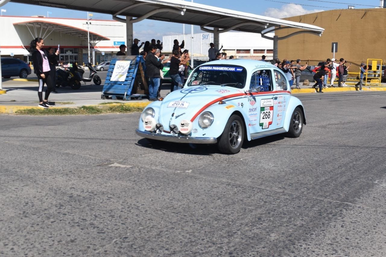 En el arribo, la presidenta municipal Melanie Murillo Chávez, acompañada de Eduardo León Camargo, presidente honorario nacional de la Carrera Panamericana y miembros del Ayuntamiento, quienes dieron la bienvenida a los pilotos en el pódium colocado a un costado del jardín principal.