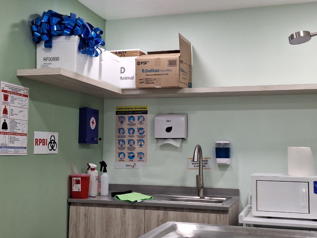 La clínica cuenta con tres médicos veterinarios, quienes brindan atención a mascotas de razas pequeñas, aplican vacunas, medicamentos y realizan curaciones de lesiones menores.