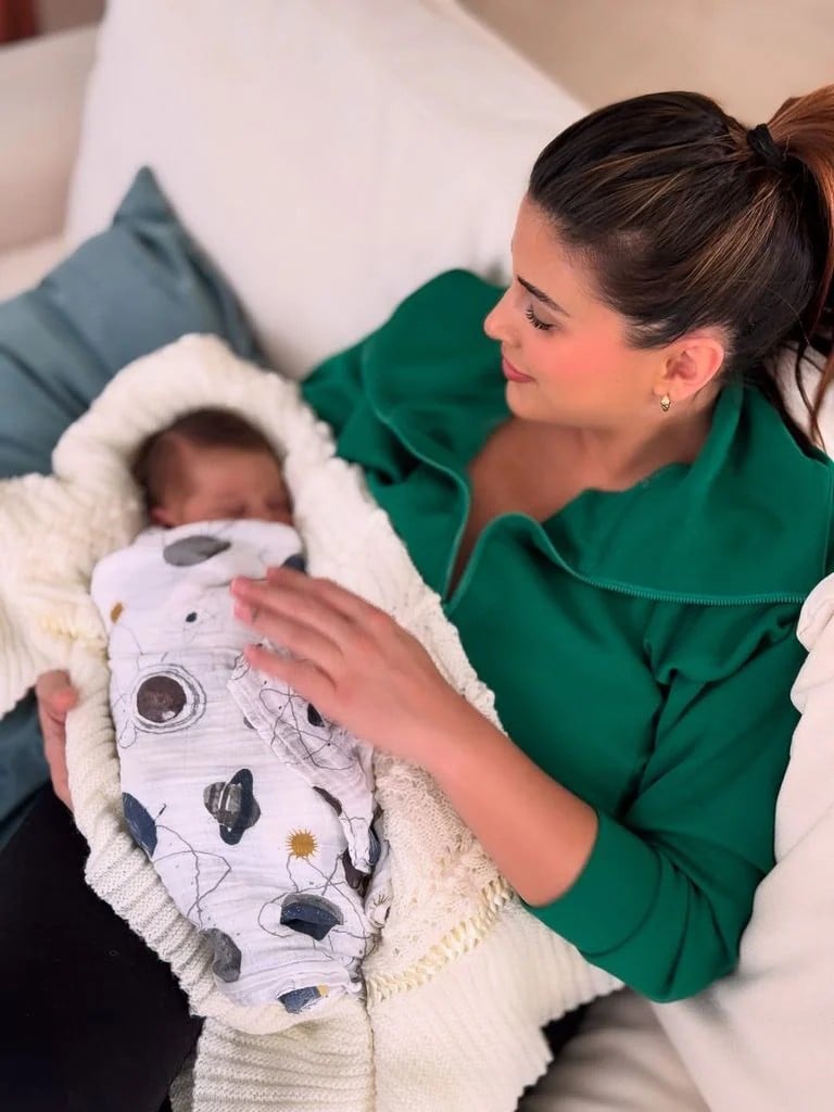 La pareja anunció la llegada de su primer hijo en común aproximadamente una semana después, el 21 de abril, compartiendo imágenes del recién nacido en sus redes sociales.