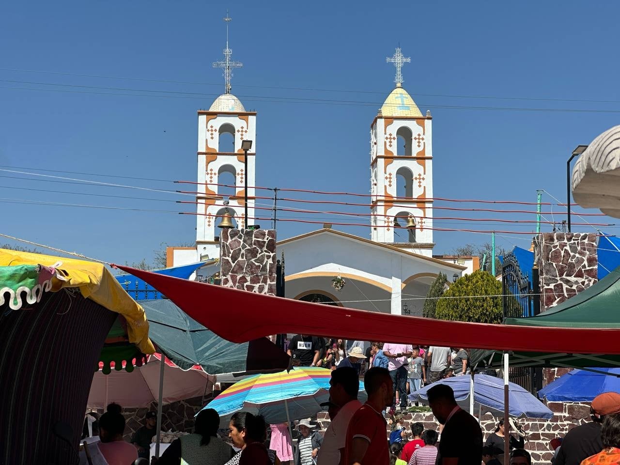 Tras visitar el templo y recibir la bendición que se otorga a quienes dejan una limosna voluntaria destinada al mantenimiento del recinto las familias salen al jardín para disfrutar la tarde. Niños corren entre los puestos, adultos conversan bajo la sombra y los músicos siguen animando el ambiente.