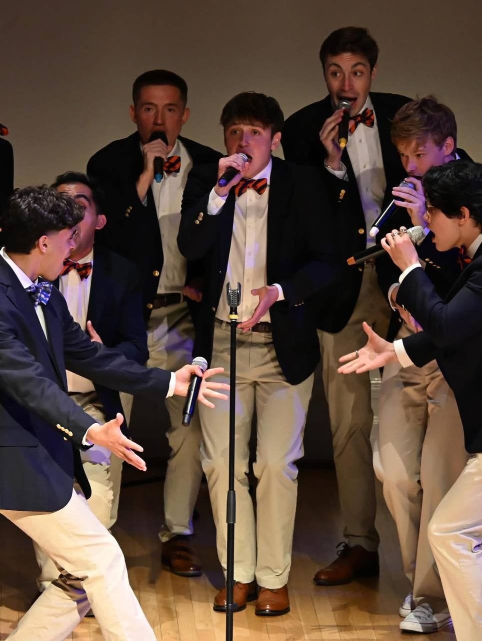 El grupo, que cuenta con una trayectoria histórica tras la fundación del primer ensamble en 1953, actualmente interpreta una mezcla de pop contemporáneo y música vocal clásica sin perder el sello característico al mantener su vestimenta con blazers azul marino y moño naranja en cada una de sus presentaciones.