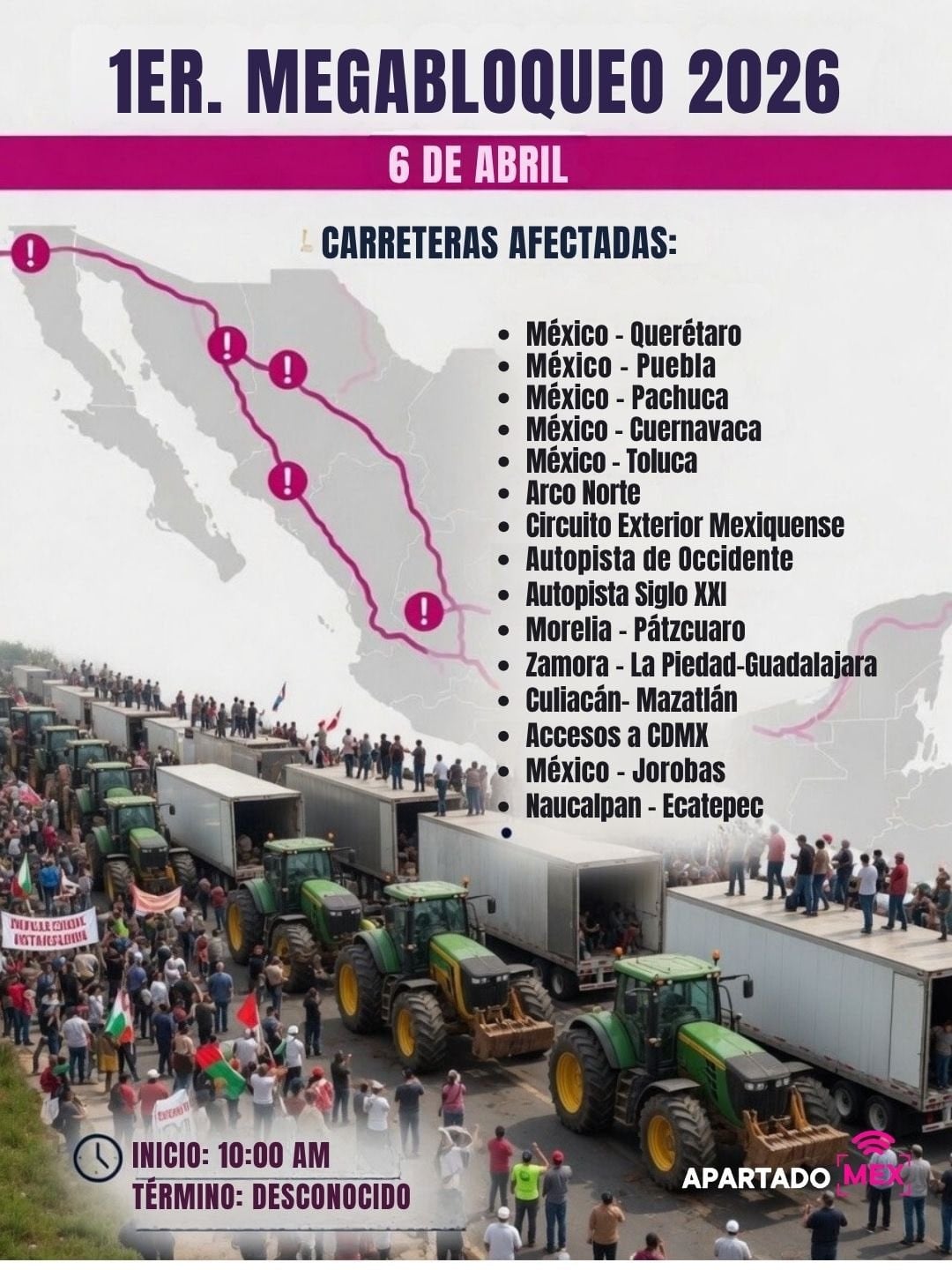 La Asociación Nacional de Transportistas (Antac) y el Frente Nacional para el Rescate del Campo Mexicano convocaron a esta movilización desde temprano, aunque los bloqueos se comenzaron a reportar hasta alrededor de las 10:00 de la mañana.