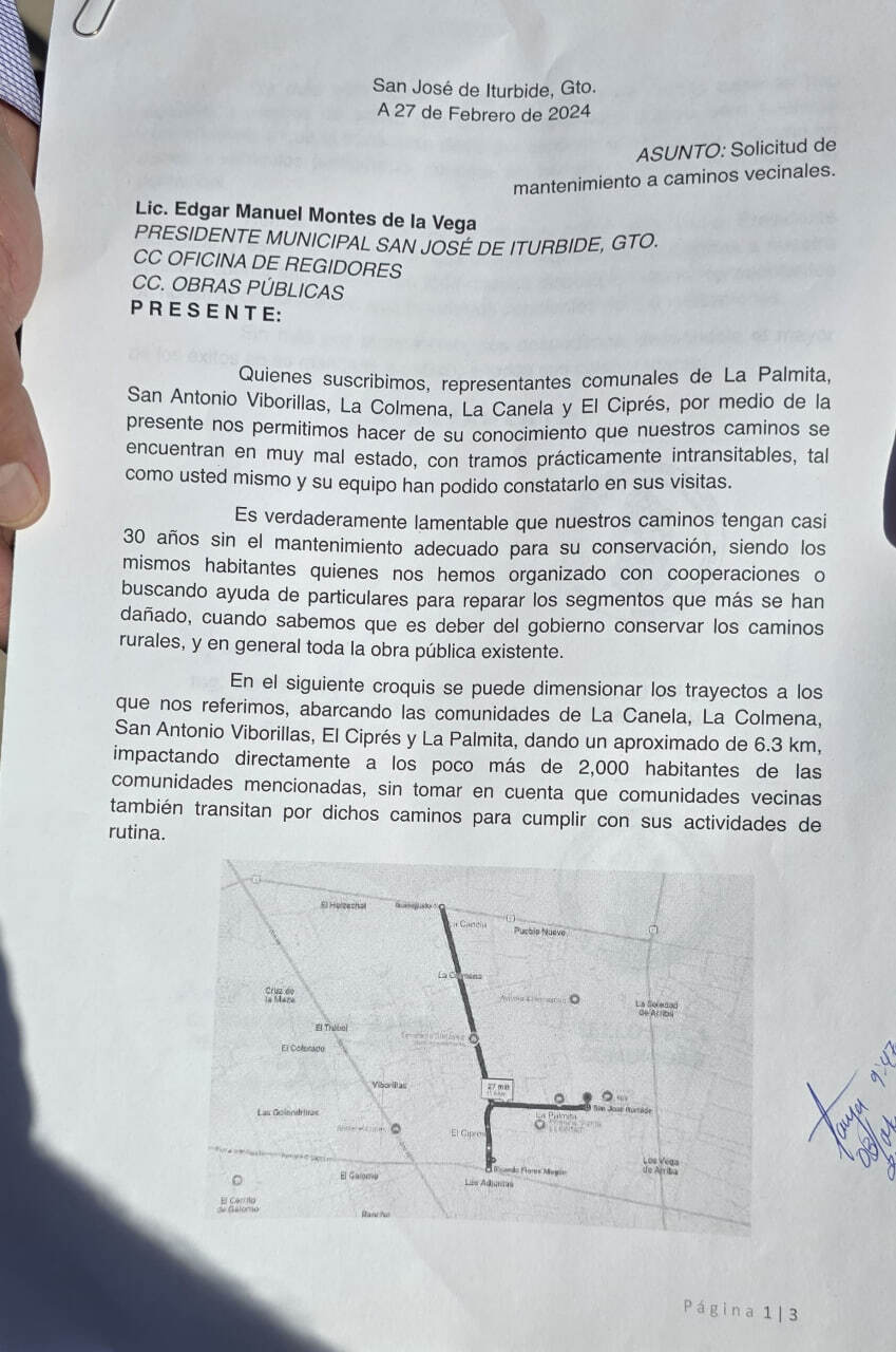 Esto, a pesar de que tienen conocimiento de que es deber del gobierno conservar los caminos rurales y, en general, toda la obra pública existente. La precaria condición del camino se presenta en un tramo de aproximadamente 6.3 kilómetros, abarcando las comunidades de La Canela, La Colmena, San Antonio Viborillas, El Ciprés y La Palmita, impactando directamente a poco más de 2 mil habitantes, sin tomar en cuenta que comunidades vecinas también transitan por dichos caminos para cumplir con sus actividades diarias.