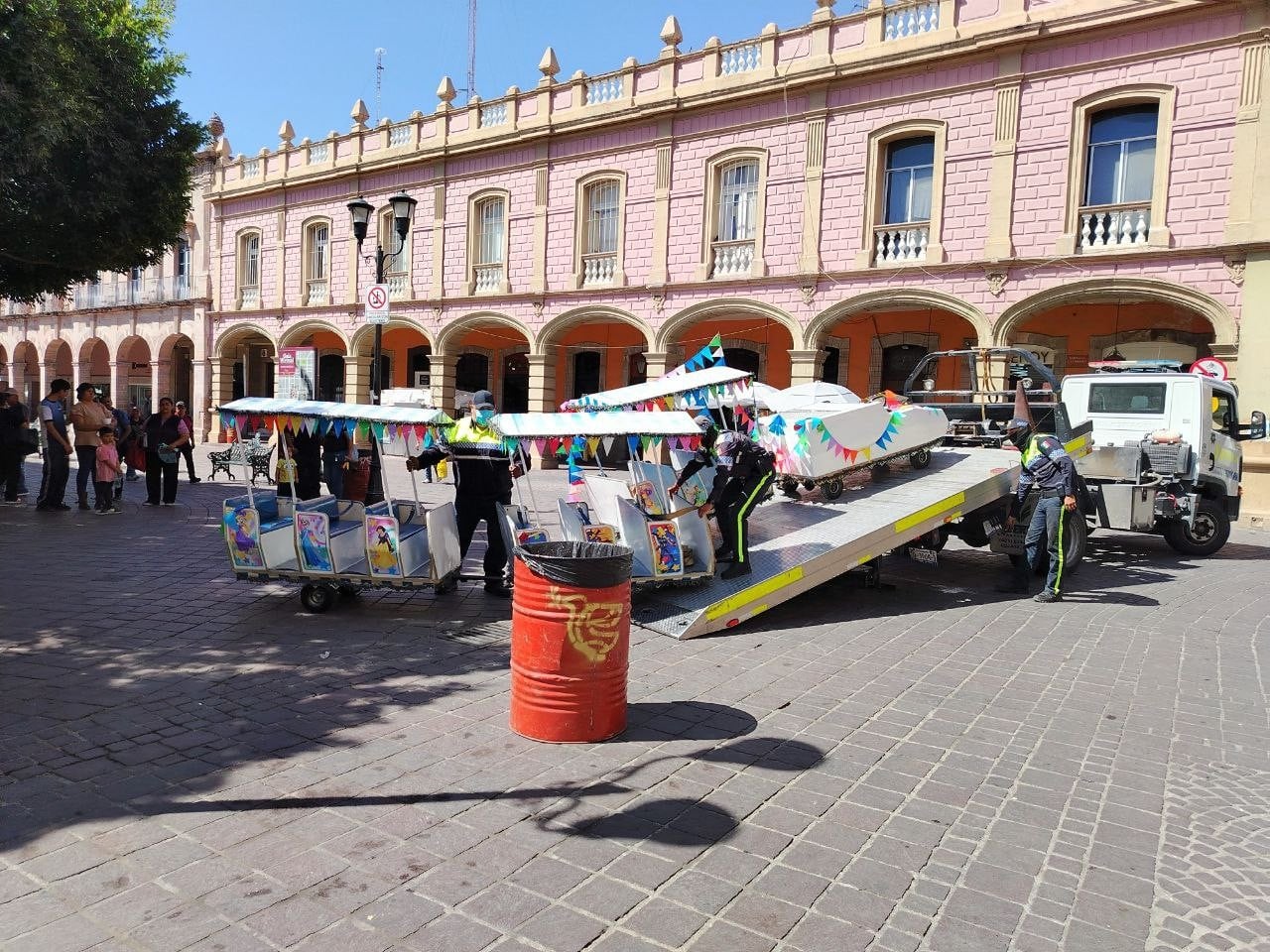 Por lo que la tarde del lunes el personal de Fiscalización retiró el trenecito del jardín y los elementos de Tránsito lo subieron a la grúa y se lo llevaron al corralón ante la mirada incrédula de los que pasaban por el lugar.