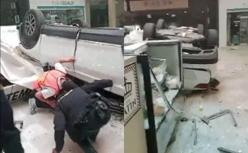 “Se registra percance en una plaza comercial, luego de que la conductora, que fue trasladada a un hospital particular, activa la reversa por accidente y cae a un segundo piso. Autoridades de seguridad pública y bomberos auxilian en el lugar”, informó la alcaldía.